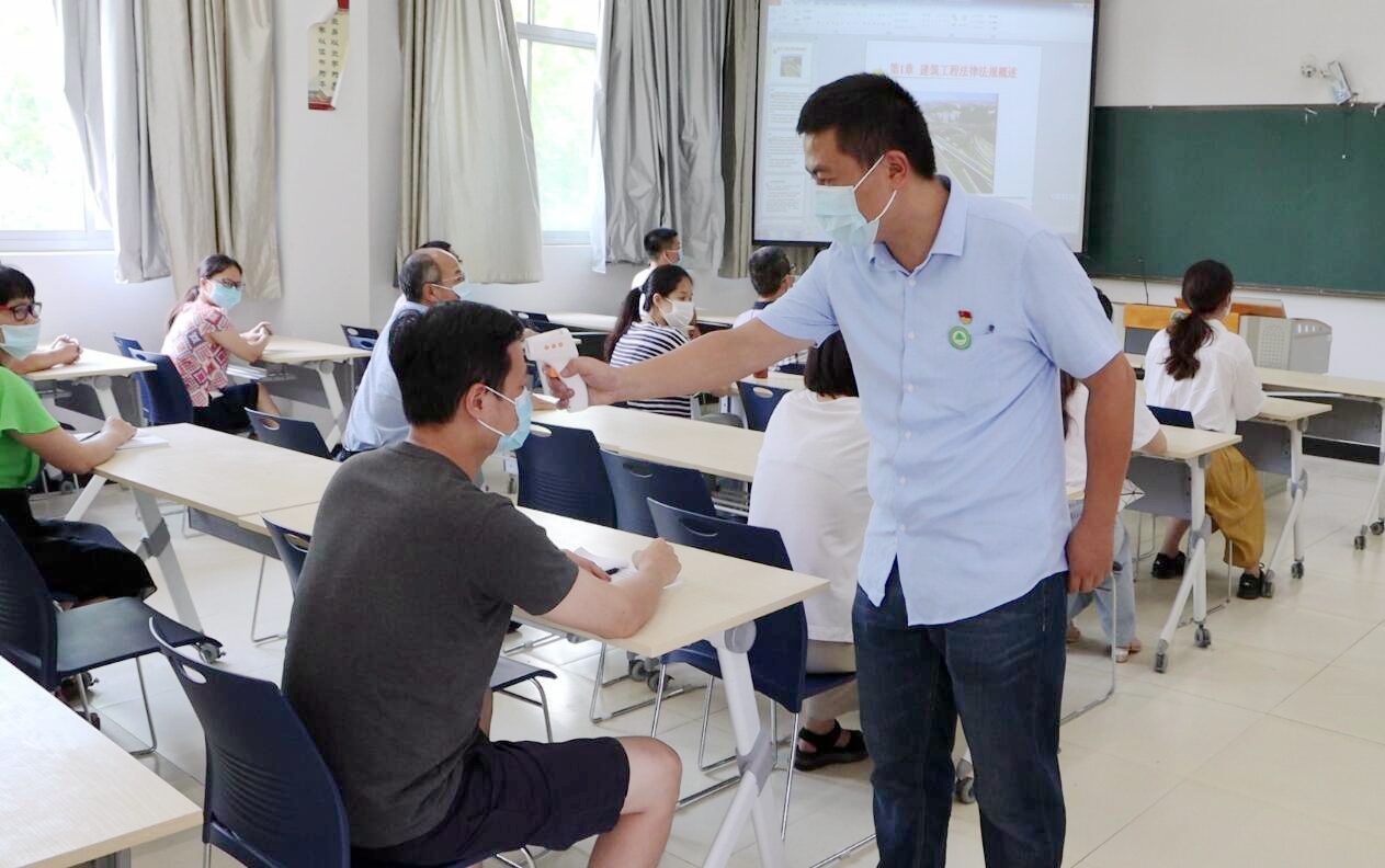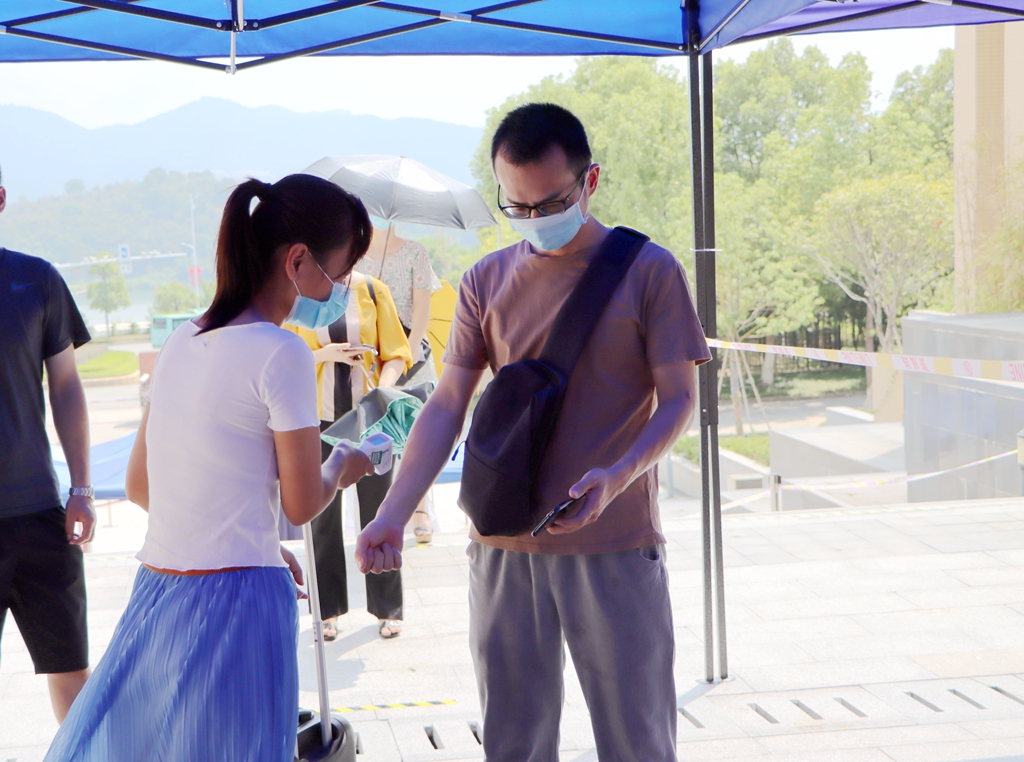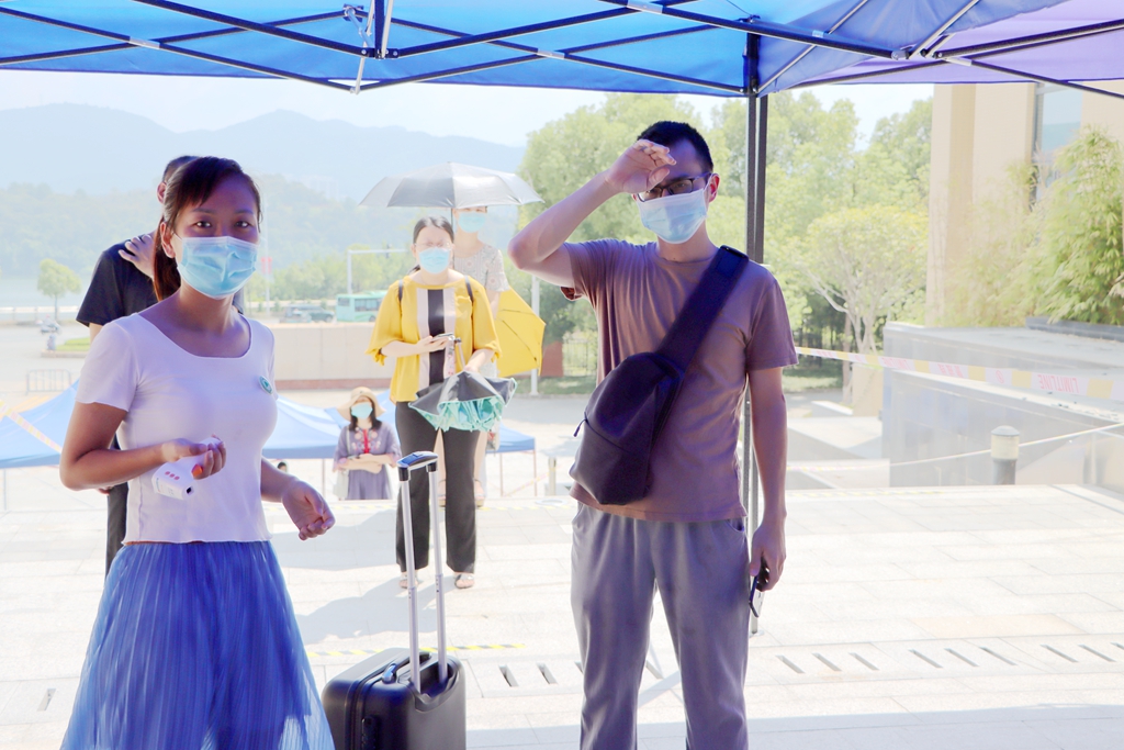 ▲学生身份核验、检测体温