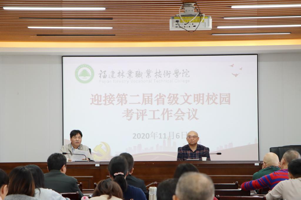 本网讯 2020年11月6日,学院召开迎接第二届省级文明校园考评工作会议。院党委书记万泉、党委副书记严绍裕及迎评工作相关工作人员参加了会议。