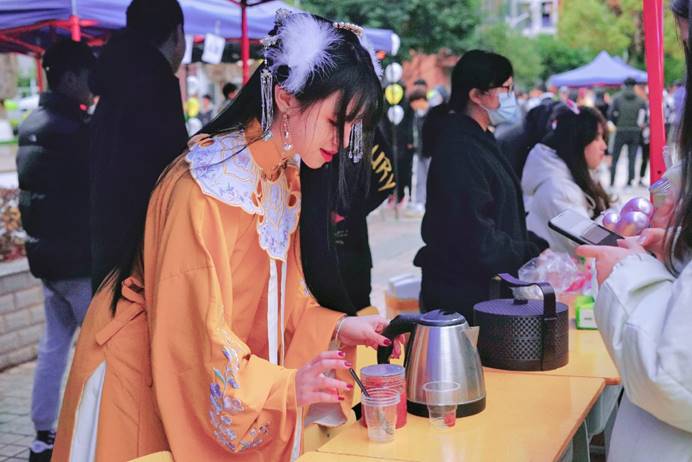 此次活动分为美食营销大赛、家乡特产推介、水果拼盘雕刻三部分。在美食营销大赛现场美食展示区气氛热烈,17个传统美食摊点、8个八闽特产摊点吸引了众多师生观摩品尝。参展餐品类型多样、形态各异,主食造型雕刻、美味甜点拼盘、菜品创新烹饪,芋泥啵啵奶、雪花酥、钵钵鸡、红糖糍粑、关东煮……各种美味佳肴琳琅满目。大部分美食出自食品营养检测专业学生之手,这些食品取用普通食材,经过同学们的精巧手艺烹饪而成。每个摊位前长长的队伍里翘首企盼美食节到来的同学们身心放松地享受这一场饕餮盛宴。家乡特产推介组的同学们主要来自旅游管理和林业技术专业,他们将永泰李干、浦城桂花蜜、福鼎鸡爪等各地美食展示出来,通过家乡特产来推介各自家乡,邀请大家前往他们的家乡旅游,关注绿色生态发展。现场另一边还设有丰富的文娱表演以及学生水果拼盘雕刻创意大赛的展示。吃汉堡等有趣的互动游戏及丰富的奖品,更是引爆全场引来了众多同学的参与。不少参加的同学兴奋地感叹,“今天的活动太有意义了,不仅能在快乐地享受美食的过程中感受我们粮食的来之不易,还能在大学校园里就体验各地美食风味!”