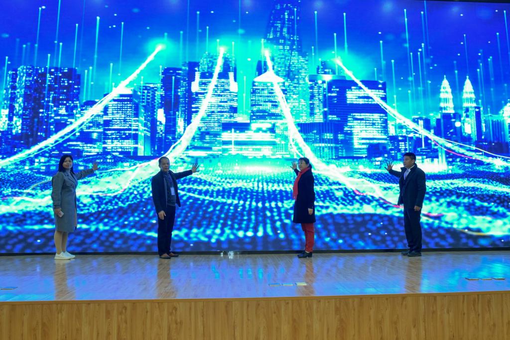 会上还举行了省级智慧林业产业学院启动仪式。建设产业学院是深化产教融合、校企合作的重要模式,也是推动高职院校主动对接行业产业需求,培养产业适用人才的重要载体。由福建林业职业技术学院和福建中量智汇科技有限公司、福建兴宇信息科技有限公司共建的智慧林业产业学院于2020年11月获福建省高职院校产业学院试点项目立项,项目建设期为3年,建设经费预计投入1000万。学院首个省级产业学院的成立,标志着学院在产教融合、校企合作的办学上进入一个新的里程碑。福建省林业局人教处石慧英调研员、福建林业职业技术学院刘文开院长、福建中量智汇科技有限公司孙彤总监、福建兴宇信息科技有限公司陈伟总经理共同启动省级智慧林业产业学院建设,见证了这令人振奋的时刻。