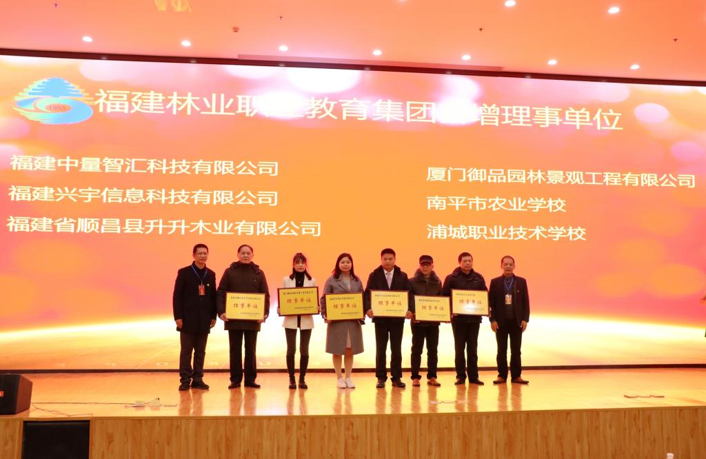 刘文开院长为福建中量智汇科技有限公司、福建兴宇信息科技有限公司、福建省顺昌县升升木业有限公司、厦门御品园林景观工程有限公司、南平市农业学校、浦城职业技术学校等6家福建林业职业教育集团理事会新增理事单位授牌。