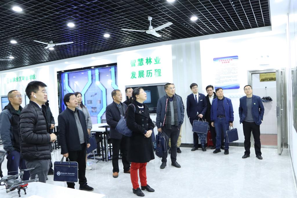 石慧英调研员一行在刘文开院长的陪同下参观学院智慧林业教室、智慧生态综合馆