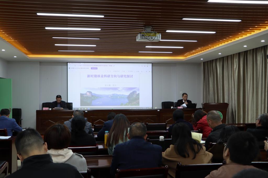 最后,黄云鹏院长以“新时期林业科研方向与研究探讨”为题为与会人员作了专题讲座。会前,黄院长一行还参观了林职院森林生态馆、林业智慧教室、无人机实训室等。