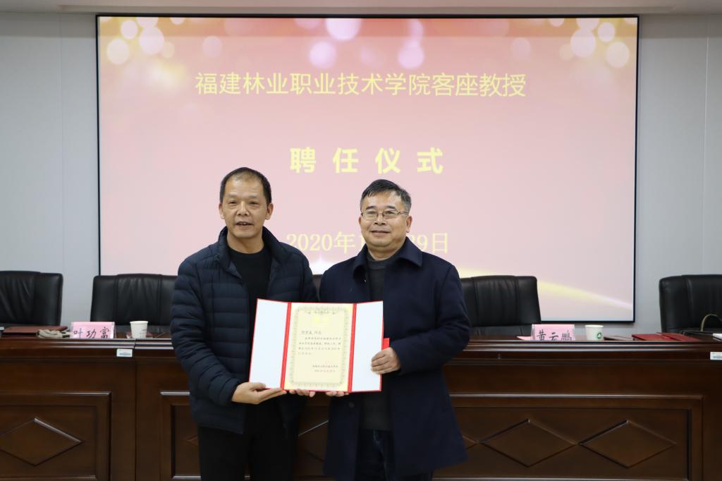 签约仪式后,刘文开院长为省林科院授牌“科教融合基地”,并聘任黄云鹏院长、叶功富副院长、何学友所长等7名教授级高工为客座教授。