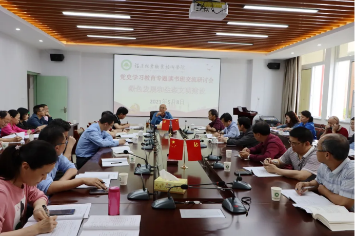 本网讯 为深入开展党史学习教育,丰富党史学习教育形式,根据党史学习教育专题读书班安排部署,5月8日下午,院党委书记万泉在江南校区办公楼五楼会议室主持召开党史学习教育专题读书班交流研讨会。会议通过重点讲解、观看宣传视频、交流经验等方式,结合《习近平谈治国理政》(第三卷)和现场教学内容,就绿色发展和生态文明建设开展交流研讨。全院副处级以上干部参加研讨。