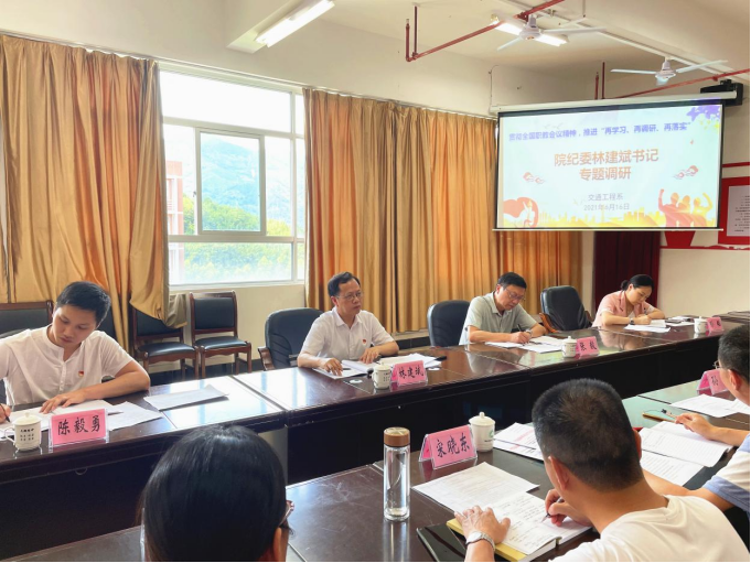 在艺术传媒系和交通工程系,艺术传媒系党总支书记陈政及交通工程系党总支书记李肇锋就系部基本情况(系部概况、党组织情况、教职工情况、在校生情况),系部领导班子成员情况、分工情况、系部教职工在校亲属情况,党总支落实主体责任情况(包括中心组学习、专题学习、警示教育、一把手履职等)作了汇报。艺术传媒系主任曾秀云就系部采购项目情况、系部基建修葺项目情况及系部科研情况、存在的困难和问题等向调研组作了汇报。交通工程系孙华主任从回顾建系之初的困难出发,指出了因为埋头苦干、聚焦于实践性的技能提升而导致系部学术性成果不够丰富的问题,分析了在现代高等职业教育发展的情况下,交通工程系以打造造价类品牌专业、提升系部影响力为当前主要工作。在后勤管理处,处长雷泽兴就后勤基建项目、采购项目情况等作了汇报。其他老师也结合自己的本职岗位,从实验室建设、实验仪器修缮、机关部门工作等问题提出了自己的建议和想法。
