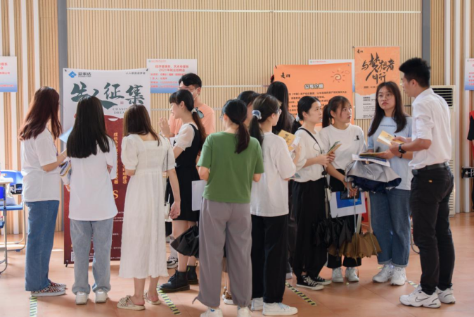 本网讯 为满足毕业生实习求职的需要和用人单位招聘人才的需求,搭建用人单位与毕业生双向选择的平台,艺术传媒系和经济管理系于2021年6月26日在天麟校区礼堂举办了2021届未就业毕业生暨2022届实习毕业生线下校园招聘会。