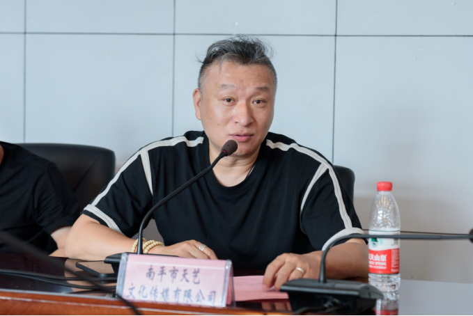 艺术传媒系党总支书记陈政主持座谈会并向企业代表介绍学院概况