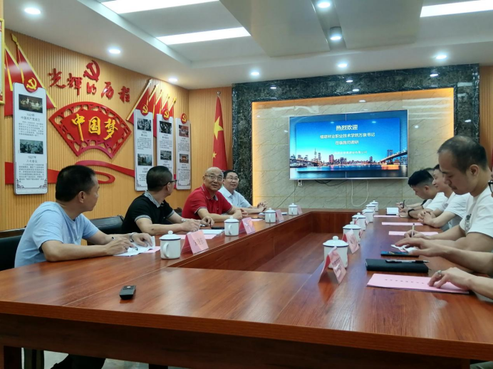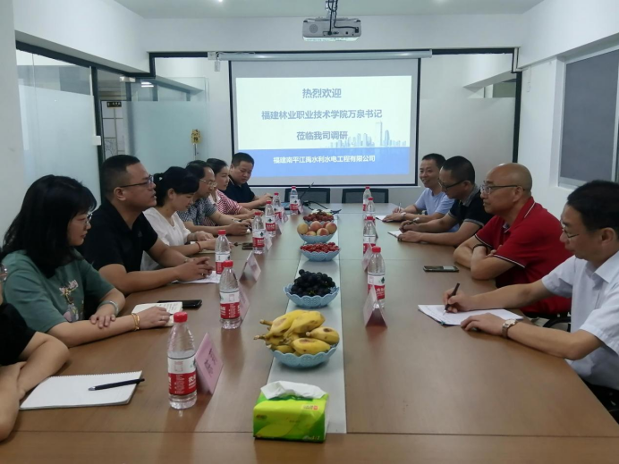 万泉书记一行与企业法人、技术总工、项目经理、优秀毕业生等企业代表进行了座谈,与企业负责人进行深入交谈,详细了解企业的生产经营情况、用工需求,为进一步推动校企共育人才、解决毕业生就业打下了基础。在江禹水利水电有限公司,与校友们开展了亲切交谈。校友们纷纷对学院近年来在高水平专业群建设、人才培养质量和服务地方产业发展等方面取得的成效表示高度认可。在福建睿翼建设有限公司,企业负责人张国清介绍了企业的经营情况,会谈中,张国清还特别自豪的介绍了企业成立的中国共产党福建省睿翼建设有限公司支部委员会,其中大部分党员来自我院毕业生。万泉书记指出,将进一步加深与企业、与校友的联系,积极开展多种形式的校企合作,促进校企双方合作共赢,欢迎校友经常回学院走走。