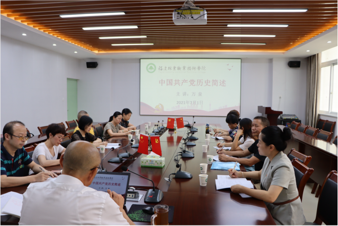 7月1日下午,学院党委书记万泉在江南校区第一会议室给全体党外人士上题为《中国共产党历史简述》党史学习教育专题党课,党课由组织部(统战部)部长李霞主持。