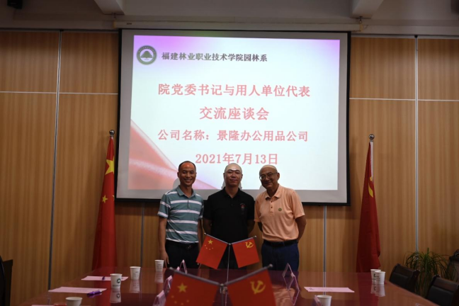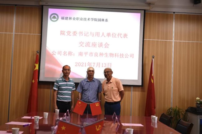 本网讯 为响应教育部关于“鼓励职业院校的书记、校长带头联系100家以上的企业”号召,2021年7月13日下午,院党委书记万泉与园林系校企合作企业座谈交流。参加此次座谈会的企业有福建昊铭现代农业发展有限公司、福建省南平市良种生物科技有限公司、沙县马岩休闲度假有限公司、福建好家园园林景观工程有限公司、漳州钜宝生物科技有限公司、南平市景隆办公用品有限公司、福建省南平市宏福建设工程有限公司共七家公司。本次座谈会由园林系党总支书记陈剑勇主持。园林系组织员吴慧敏以及毕业生专兼职辅导员一同参加了座谈会。