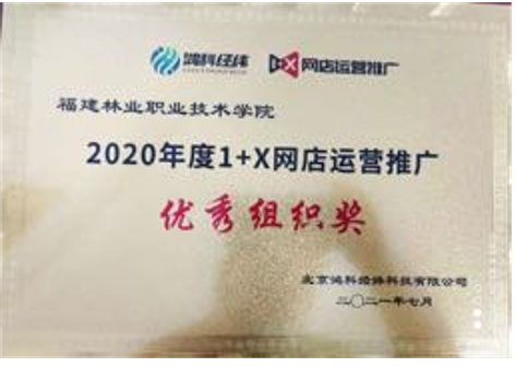 本网讯 近日,1+X《网店运营推广》职业技能等级证书试点院校工作总结会在厦门举行,会上评价组织对2020年试点工作进行了总结表彰。2020年我院共50名学生参加网店运营推广项目试点考试,通过率高于全国平均通过率21%,被授予“优秀组织奖”称号。