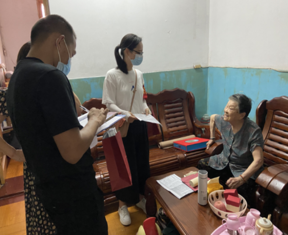 教工党支部党员徐豪老师带老人到医院打疫苗