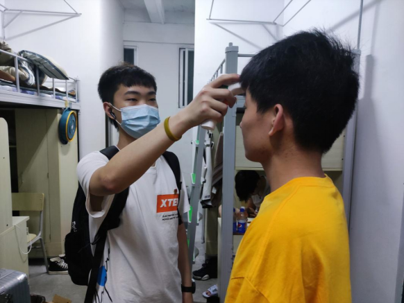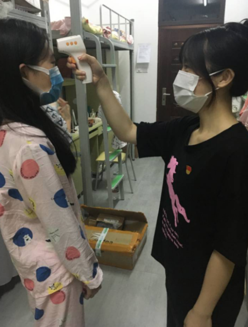 学生党员进宿舍测量体温