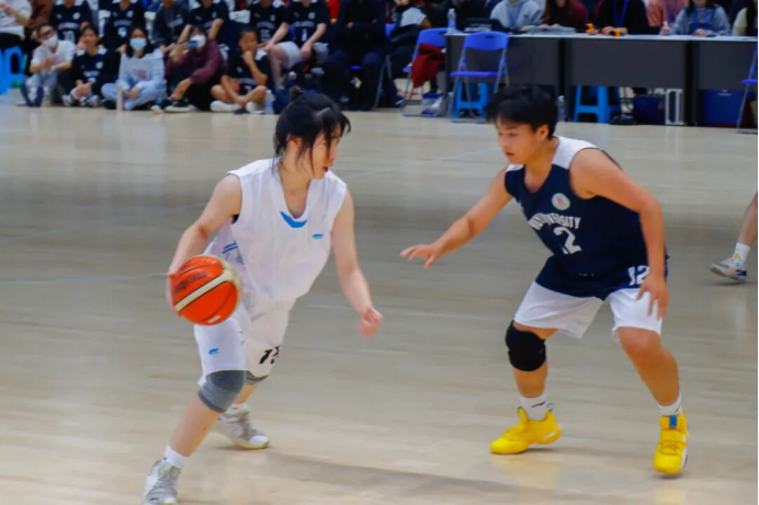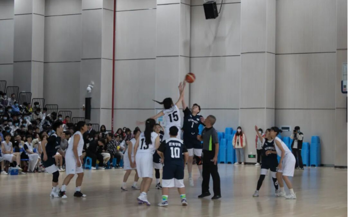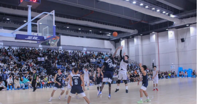随着裁判一声哨响,比赛的战鼓敲响,篮球被高高抛起,场上球员看准时机、奋力一跃,展开了激烈的角逐,场下观战师生的喝彩声不绝于耳。场上球员时进时退、时缓时急,不时上演精彩的配合;一次次精准的远投,每个精彩的带球过人、传球、防守、进球,更是引来场外观众掌声阵阵、喝彩连连,整个赛场因竞技场上的角逐而沸腾,体现了新时代青年学生奋发向上的精神状态。