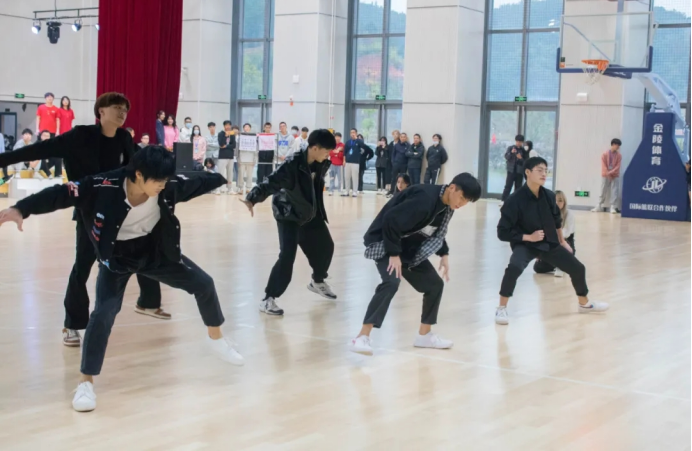 比赛过程中,天麟艺术团啦啦操队、街舞队、爵士舞队、中国舞队的同学们先后登场献上了青春活力的动感舞蹈,带动了整个赛场气氛。