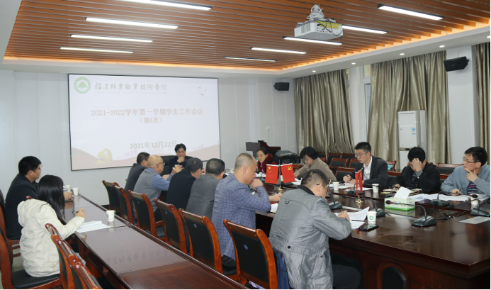 本网讯 11月22日,我院2021-2022学年第一学期第六次学生工作会议在江南校区办公楼五层会议室召开。院党委副书记严绍裕出席会议。学生工作部、安全保卫处、院团委负责人,各系党总支书记参加会议。会议由学生工作部部长蔡敏主持。