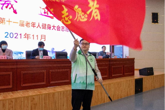 仪式上,与会人员共同观看了《省运会志愿者招募宣传片》。文明办余贞辉主任讲话并宣布启动志愿者招募工作。志愿者代表领誓宣读志愿服务倡议书:我宣誓!我志愿加入福建省第十七届运动会、第十一届老年人健身大会志愿者队伍。弘扬“省运会”精神,践行志愿服务理念,从我做起,从现在做起。在每一个需要我的岗位,遵守纪律,服从指挥,热情服务,真诚奉献,倡导文明新风,传播和平友谊,为南平争光,为“省运会”添彩。让志愿者的微笑成为“省运会”最好的名片!最后,文明办余贞辉主任为我院志愿者代表授旗。