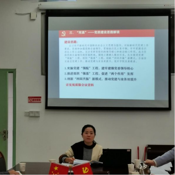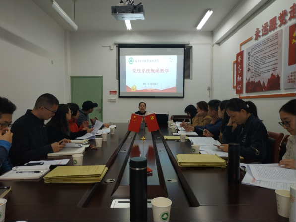 接下来,李霞部长解读了我院“双高”党的建设思路,对“学习·诊断·建设”专项行动、文明校园建设、省委组织部发展党员工作专项检查等工作进行了部署和安排,并对党统系统进行了现场教学。