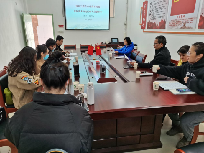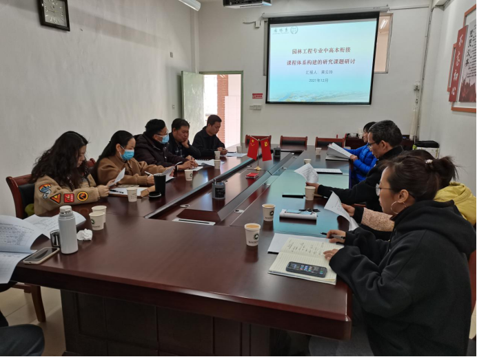 黄云玲处长首先向参会人员介绍本课题研究的目标、主要内容和创新点,课题研究阶段成果等,与会人员认真听取课题汇报,对课题阶段成果:中高本衔接政策研究、园林工程专业中高本衔接人才培养方案汇编、园林工程专业中高本衔接部分核心课程标准汇编、园林工程专业中高本衔接课程体系汇编等进行研究探讨,充分肯定了课题组前期所做一系列研究和阶段性成果,认可本课题的研究意义和价值。