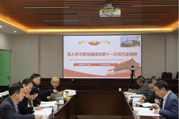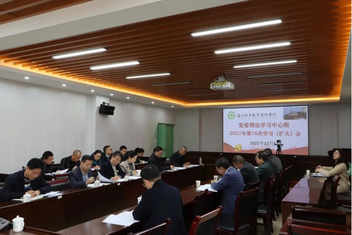 本网讯 12月8日上午,院党委理论学习中心组2021年第十六次学习(扩大)会在办公楼六楼会议室召开。会议专题学习省第十一次党代会和省委十一届一次全会精神。院党委书记万泉传达学习福建省第十一次党代会精神,部署学院贯彻意见。院党委委员、党政办主任、纪委办主任、学生工作部部长、人事教育处处长、马克思主义学院院长、安全保卫处处长、各系党总支书记、直属党支部书记参加学习。会议首次通过视频会议的方式两校区同时进行。天麟校区参会人员在天麟校区分会场参加学习。