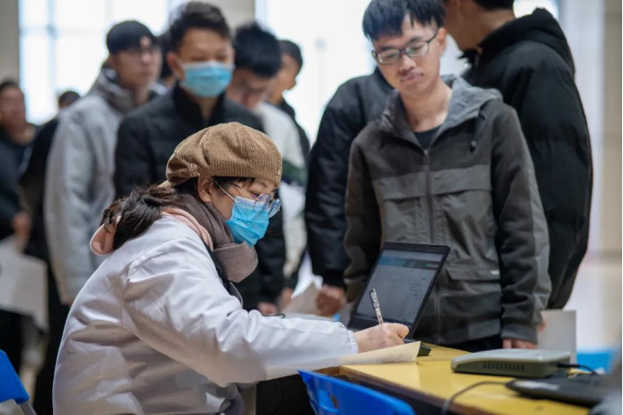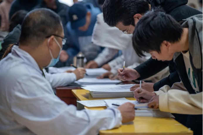 医务人员逐个对教职工及学生进行健康询问,包括近期健康状况、服用药物情况、注射其他疫苗情况等。接种者还需核实个人信息及前两针接种信息(包括疫苗类型和最后一针接种时间),并填写知情同意书。经过等候–登记–确认流程并完成接种后,医护人员耐心嘱托每一位接种者注意事项并讲解接种后可能出现的不良反应。