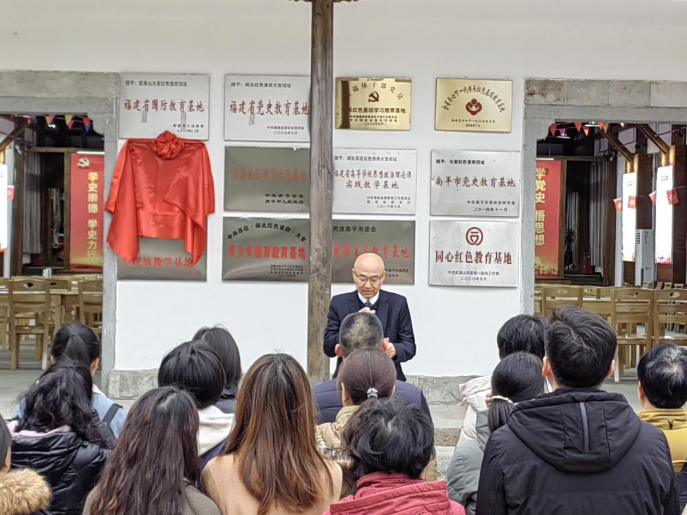本网讯 12月25日上午,福建林业职业技术学院与武夷山市委党校共建思政课实践教学基地挂牌仪式在“闽北苏区红色首府旧址”武夷山大安村举行。我院党委书记万泉,武夷山市委常委、组织部长黄明乔以及我院全体思政课教师参加了挂牌仪式。仪式由我院马克思主义学院院长郭先根主持。