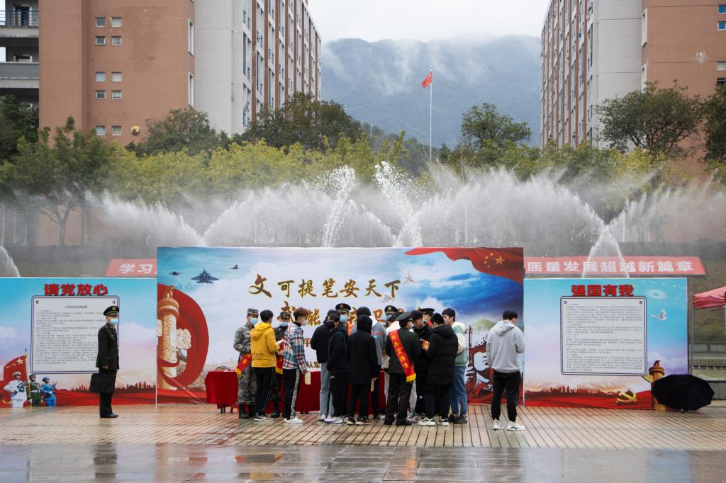 活动现场还开展了征兵政策宣传解读、军旅文化展示、优秀退役大学生展示、辅导员座谈会等形式多样的征兵宣传活动。在征兵政策宣传区,工作人员以展板、展架、宣传册等方式向大学生详细介绍征兵流程、征兵条件、政策待遇等相关事宜,前来咨询的大学生络绎不绝。