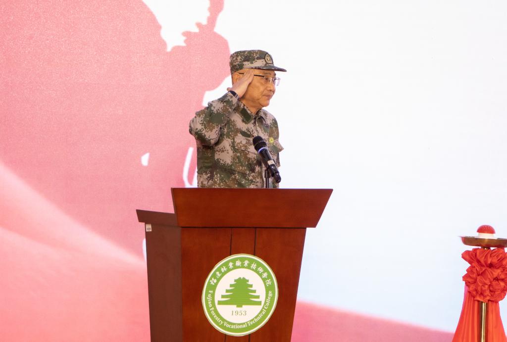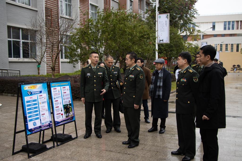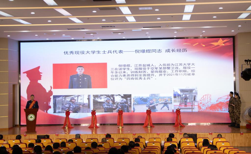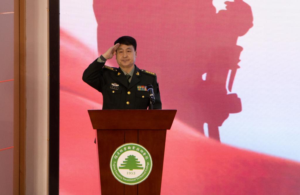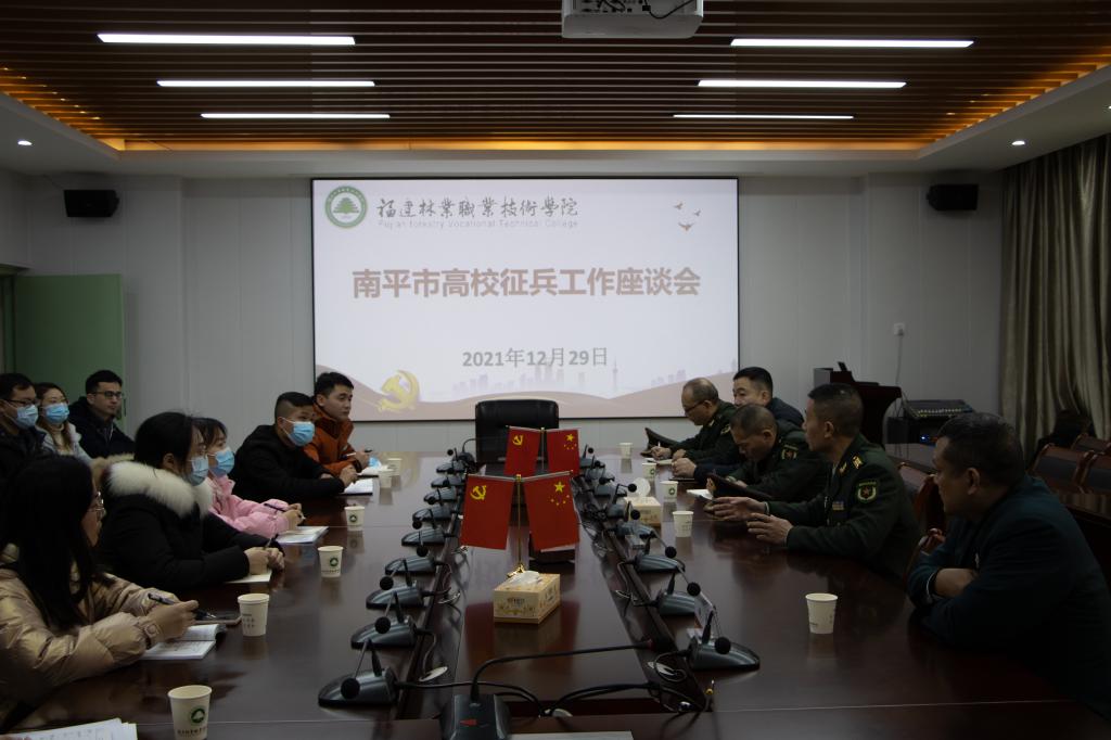 本网讯 为深入贯彻习近平强军思想,激发广大青年学子从军报国热情,扩大征兵宣传影响力和辐射面,12月29日,由南平市征兵办组织开展的“携笔从戎·不负韶华”征兵宣传暨高校征兵工作启动仪式在我院举行,标志着2022年南平市征兵工作全面展开。南平市军分区大校政委聂汉勋,我院党委书记万泉,南平市军分区大校副司令员蒋树兵,闽北职业技术学院副书记陶金辉,我院副院长谢金生,延平区副区长杨志华,南平军分区动员处上校处长李璜,南平军分区政工处上校主任郑林旋,延平区人武部上校部长李顺才出席了启动仪式,我院各系党总支书记、学生科长、辅导员及来自我院、闽北职业技术学院的300余名师生代表参加了启动仪式。