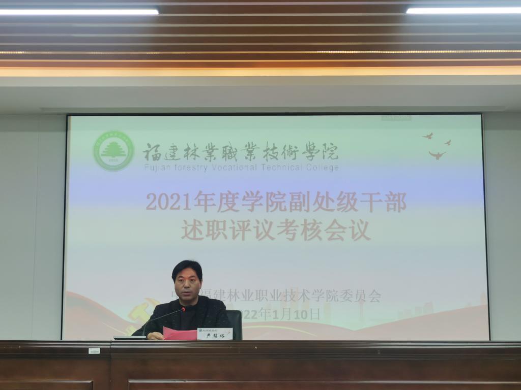 本网讯 根据学院2021年度考核测评安排,1月10日,学院在江南校区第四会议室召开2021年院系部门负责人述职评议考核大会。院领导万泉、刘文开、严绍裕、林建斌、罗立仪、谢金生出席会议。全体中层干部、民主党派及无党派人士代表、工会代表参加会议。述职测评大会由党委副书记严绍裕主持。