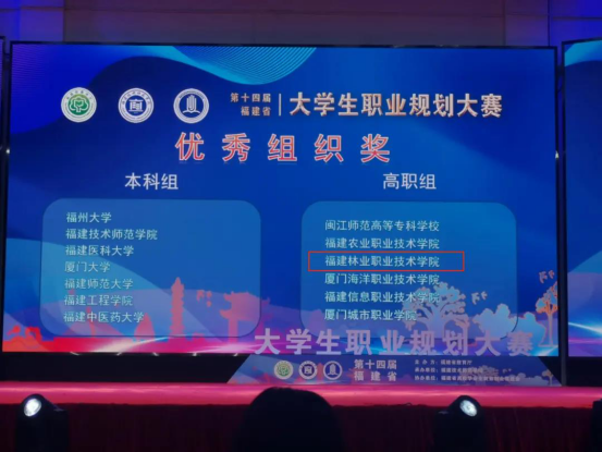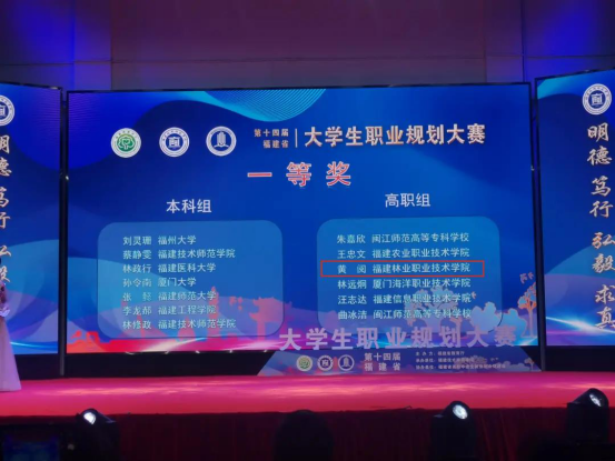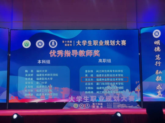 本网讯 11月19日,在福建省第十四届大学生职业规划大赛决赛中,由我院建筑工程系教师吴文杰指导的建筑室内设计专业黄阅同学的参赛作品《用“设计”之魂,打造“温度”之家一一记一名室内设计师的成长之路》荣获高职组一等奖,吴文杰老师荣获优秀指导教师奖,我院荣获优秀组织奖!