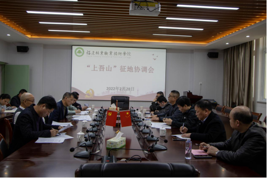 本网讯 2月28日,南平市自然资源局副局长朱志伟,延平区政府常务副区长丁铭,夏道镇政府党委书记李金文等一行莅临我院调研,协商落实“上吾山”征地事宜。院党委书记万泉,党委副书记、院长刘文开,党委副书记严绍裕,副院长谢金生以及相关部门负责人参加了协调会。