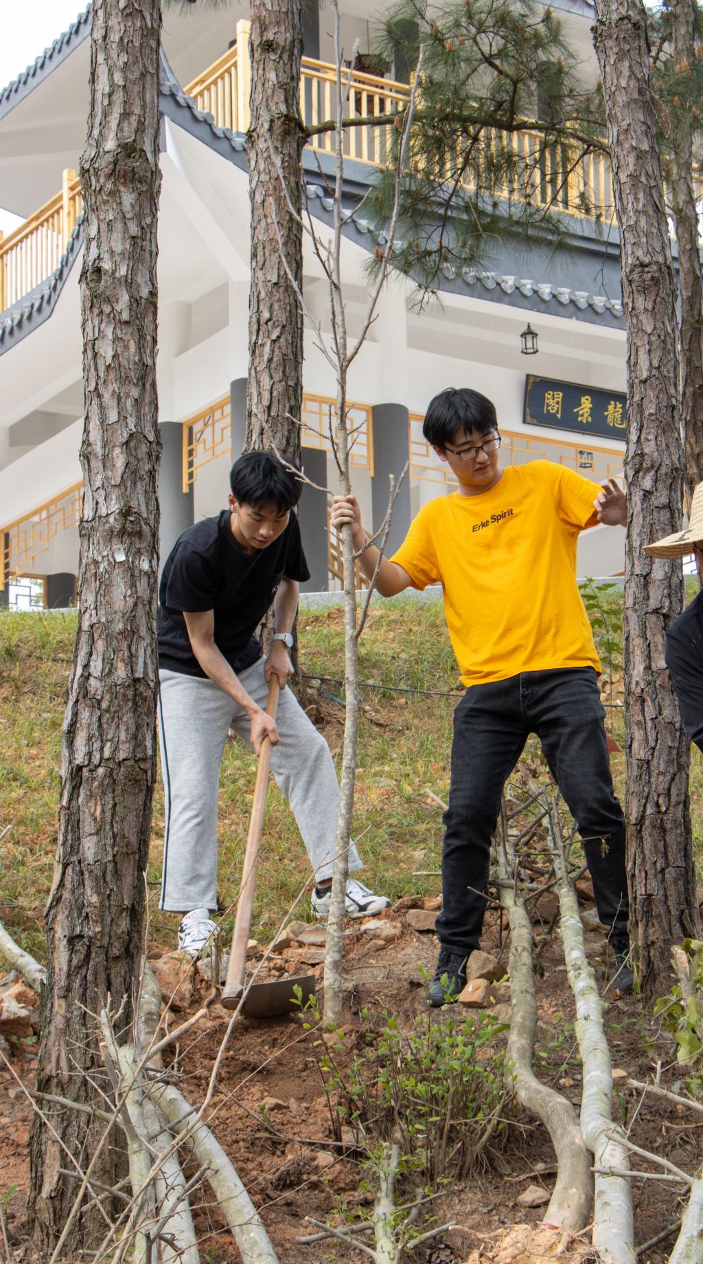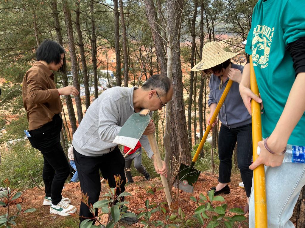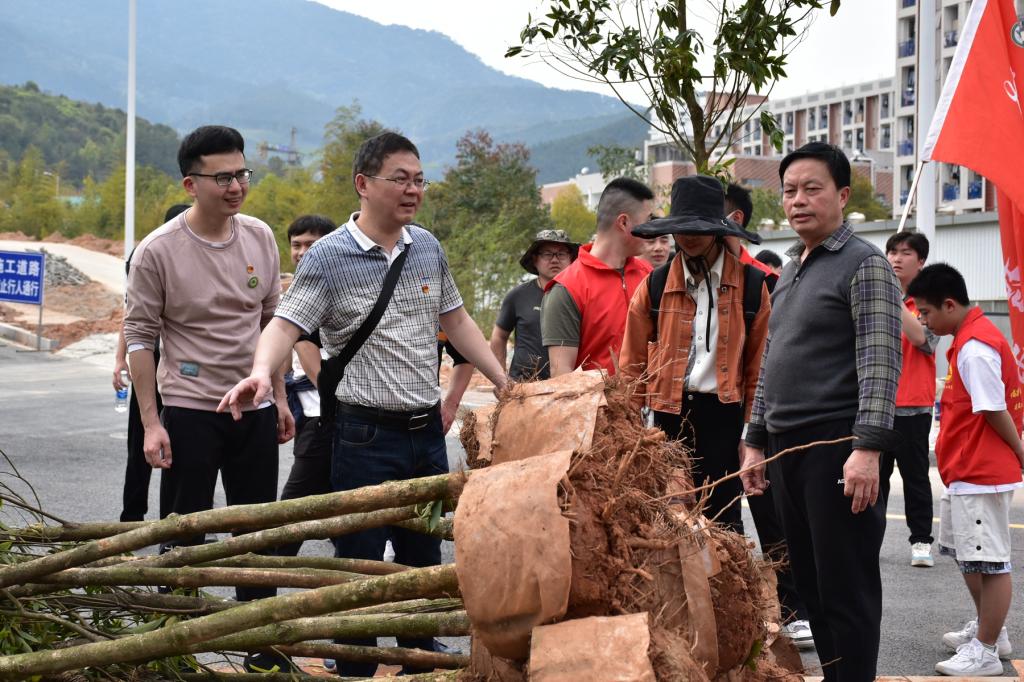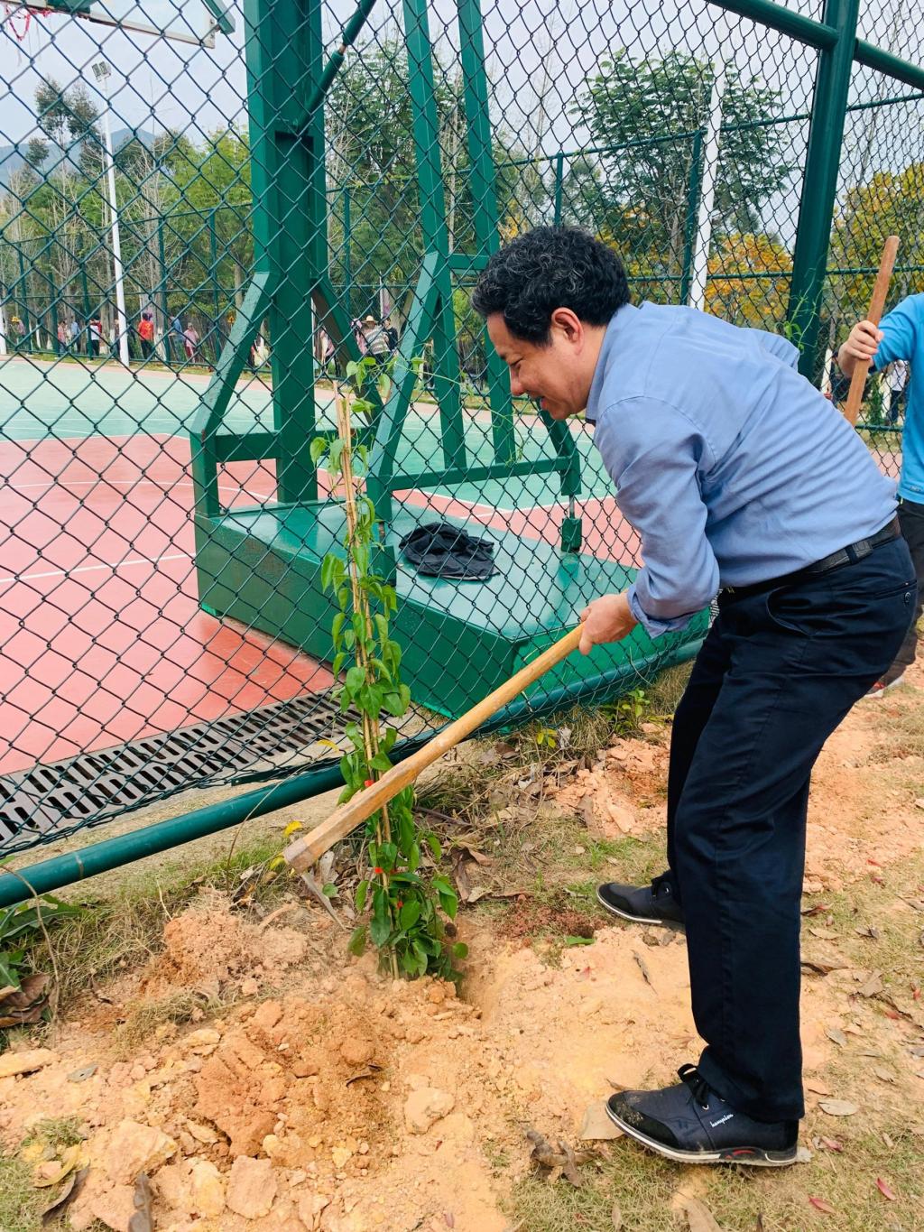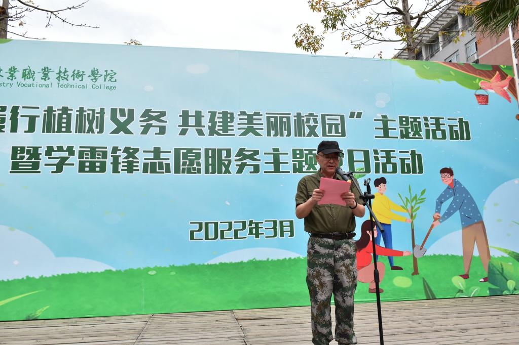 本网讯 春风吐绿、草木初萌。在全国第44个植树节与学雷锋月交汇之际,为进一步倡导人人爱绿植绿护绿的文明风尚,弘扬雷锋“奉献、友爱、互助、进步”的志愿精神,3月14日下午,院党政领导同全体师生党员齐聚校园,共同开展“履行植树义务 共建美丽校园”主题活动暨学雷锋志愿服务主题党日活动。