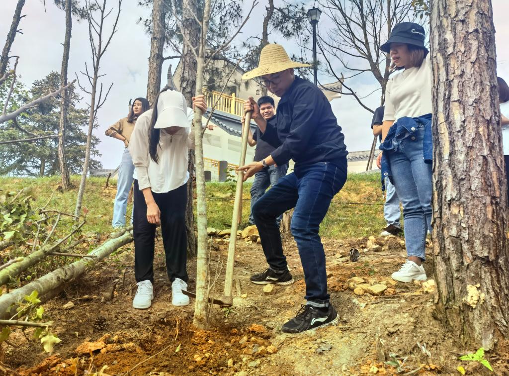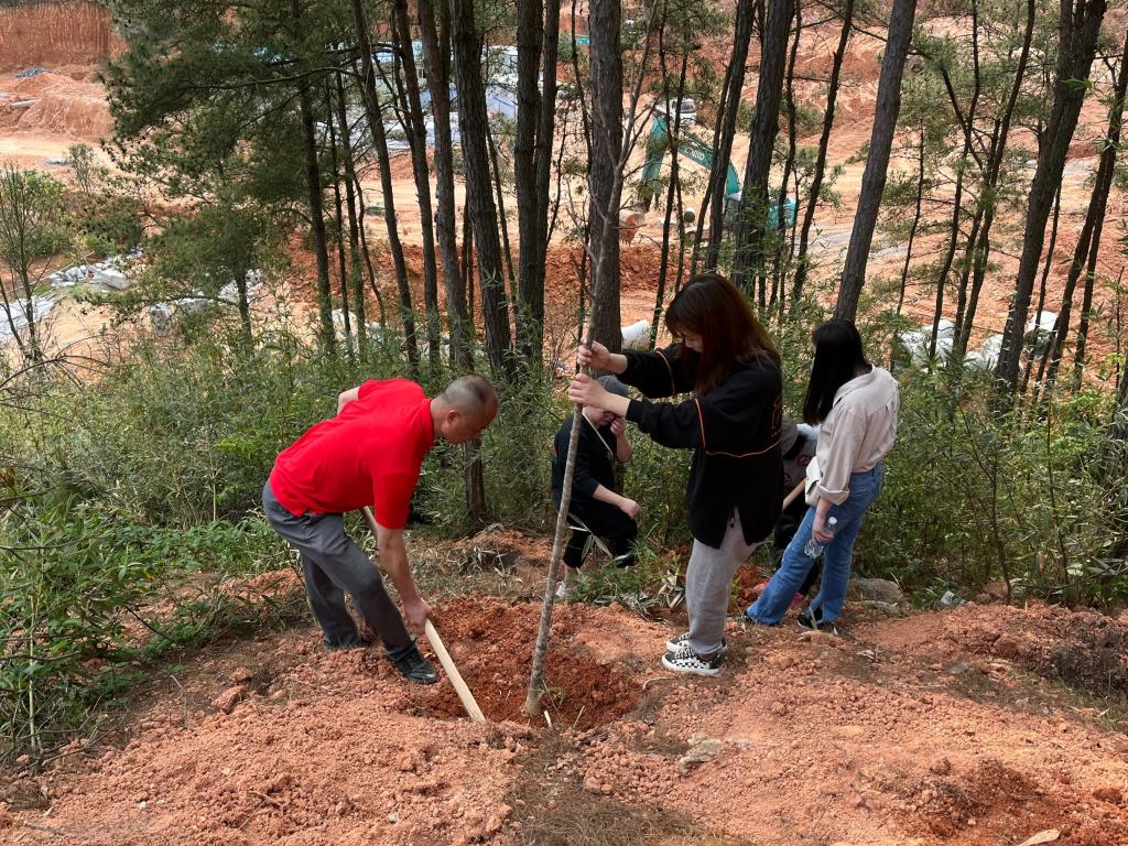 看着新种下的树苗迎着和煦春风,坚实挺拔,生机勃勃,每个人脸上洋溢着满满的喜悦。大家把树苗与希望共同植入土壤,把“敬业 吃苦 务实 进取”的天麟精神深深扎根、永续流传。师生们纷纷和自己刚种下的树苗合影。“在校时间只剩短短几个月了,恰逢此次主题党日活动,在老师的指导下,我亲手种下了一棵树。作为一名林业高职院校林学系的学子,我觉得特别有意义。此次活动既弘扬了雷锋同志的志愿服务精神,又为我们的美丽校园增添了一抹绿,同时还为助力碳中和贡献了自己的一份力量。”参加活动的预备党员罗喜鹏如是说。