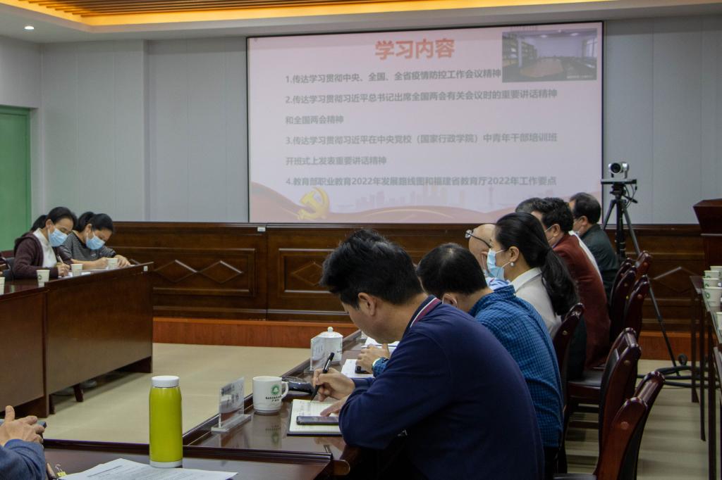 万泉书记还领学了习近平在中央党校(国家行政学院)中青年干部培训班开班式上发表重要讲话精神和教育部职业教育2022年发展路线图和福建省教育厅2022年工作要点并提出贯彻意见。