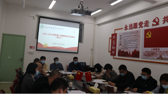 本网讯 4月18日上午,学院在江南校区行政楼四楼会议室召开2021-2022学年第二学期第4次学生工作例会部署近期疫情防控工作。院党委副书记严绍裕出席会议。学生工作部、安全保卫处、团委负责人,各系党总支书记、副书记参加了会议。会议由严绍裕副书记主持。