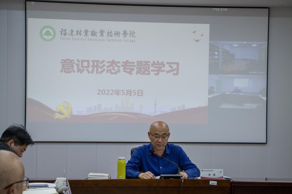 本网讯 2022年5月5日下午,院党委书记万泉主持召开2022年第5次党委理论学习中心组学习(扩大)会议。院党委委员、各系党总支负责人、机关处室党支部书记、各部门负责人参加了学习会。