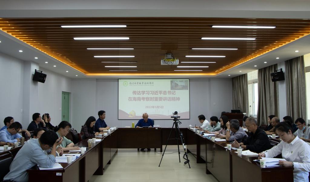 万泉书记领学了习近平总书记在海南考察时重要讲话精神。人事教育处处长黄丽霞作重点发言,她表示一要站在“海南之端”看粮食安全,迈好种业创新步伐;二要站在“海南之端”看生态建设,迈好生态优先步伐;三要站在“海南之端”看乡村振兴,迈好共同富裕步伐。