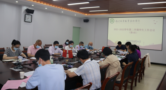 本网讯 5月9日上午,学院在江南校区行政楼五楼会议室召开2021-2022学年第二学期第5次学生工作例会。院党委副书记严绍裕出席会议。学生工作部、安全保卫处、团委负责人,各系党总支书记参加了会议。会议由严绍裕副书记主持。