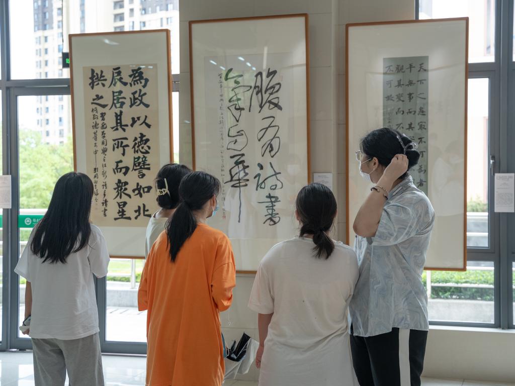 本网讯 6月6日下午,“喜迎二十大,奋进新征程——‘习近平用典’书法作品展”开幕式在学院江南校区图书馆举行。院党委书记万泉出席并讲话,院党委副书记严绍裕、副院长罗立仪参加活动。开幕式由图书馆馆长成榕主持。