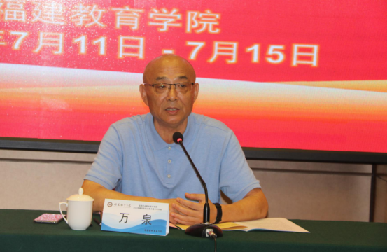 院党委书记万泉作开班动员讲话。他强调,全体学员应充分认识到辅导员在落实立德树人根本任务、推动高等教育健康发展中的重要意义、重大责任和光荣使命,希望参训学员牢记育人初心与使命,不断提升业务能力与工作水平。他同时对本培训班全体学员提出三点希望和要求:一是要将自身思想与行动融入学习中,认真学习新知识,领会学习内容,加强交流互动,学以致用,为学院增光添彩;二是要严格遵守教学要求和规章制度,时刻注意自身言行,展现我院优良精神面貌;三是要注意交通、饮食、卫生、信息安全,顺利完成培训。最后,万泉书记还对福建教育学院为培训班提供的精心策划与周到安排表示感谢,并预祝培训班成功举办,所有学员学有所获、学有所悟、学有所成。