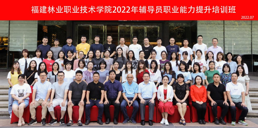 本网讯 7月11日至15日,由福建林业职业技术学院主办、福建教育学院承办的2022年辅导员职业能力提升培训班在福州举行。来自学院各系的62名辅导员参加了本期培训。