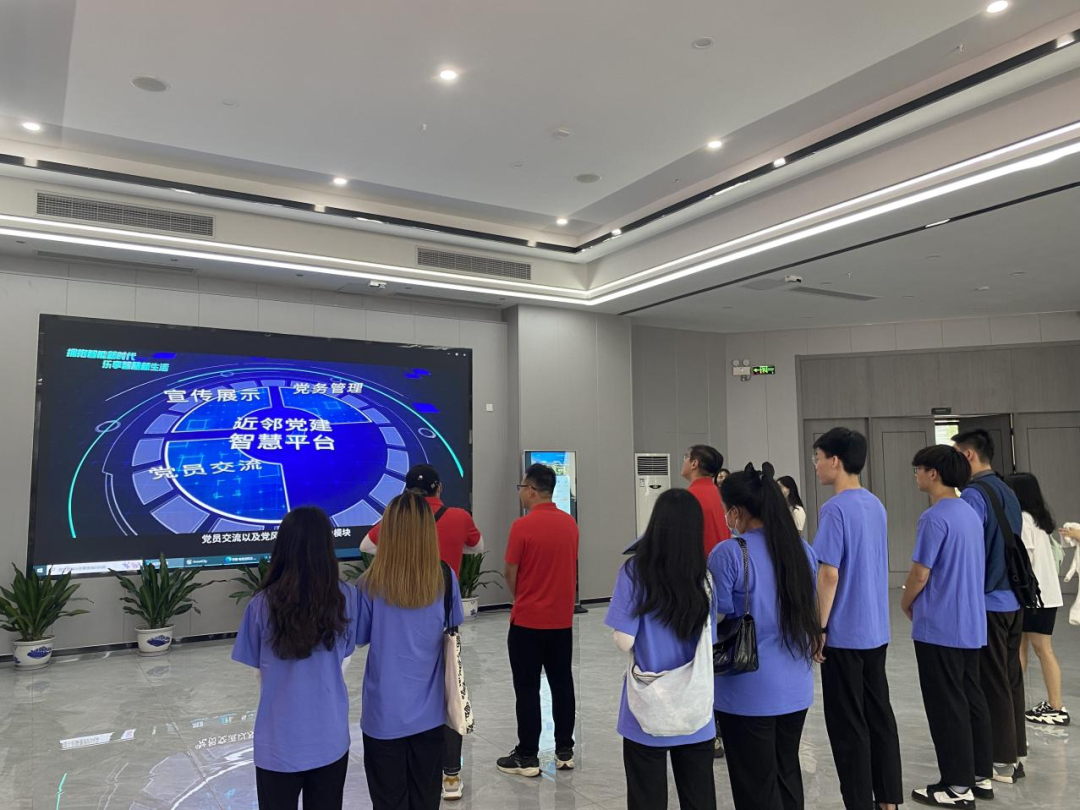观察团成员来到长乐区东湖数字小镇,受到了东湖社区第一书记刘宗典等领导的热情接待。通过讲解员的详细介绍,师生们了解到东湖社区通过“i东湖小程序”平台,围绕社区治理、社区服务、社区邻里、社区党建四个核心场景功能,着力打造走在时代前沿的新型智慧社区,为社区居民提供一站式服务入口,提高社区服务品质和管理效率,实现了整个社区的多方联动和统一管理,改善社区信息化孤岛现状,引领社区智慧化建设。东湖社区先进的管理理念和智能科技的治理手段让师生们大为赞叹。
