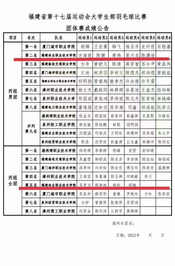 由我院工程造价1903班蒋炜、工程造价1904班袁兴龙、建设工程监理1801班陈健、林业技术2003班方海坡、计算机应用技术2002陈潇迪,5名选手组成的羽毛球男子团体喜获男子团体赛第二名。