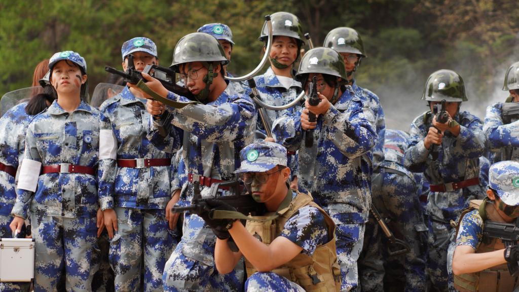 瞄准射击、侦查抓捕、散打拳击。吹过的风,淋过的雨,晒过的太阳,流过的汗水全都汇成军训汇演时无穷的力量。
