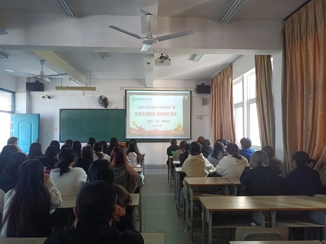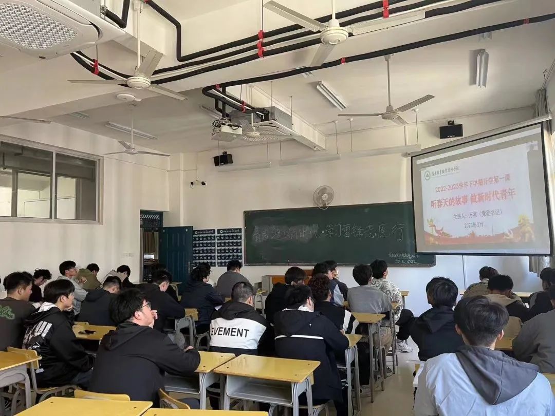 本网讯 为深入学习贯彻党的二十大精神,落实省委省政府“深学争优、敢为争先、实干争效”行动部署,引导全院师生自信自强守正创新,续写新时代青年故事,3月14日下午,福建林业职业技术学院采用“线下讲座+线上直播”的形式开展2023年春季学期“开学第一课”,学院党委书记万泉以《听春天的故事 做新时代青年》为题,为全院师生讲授专题思政课。