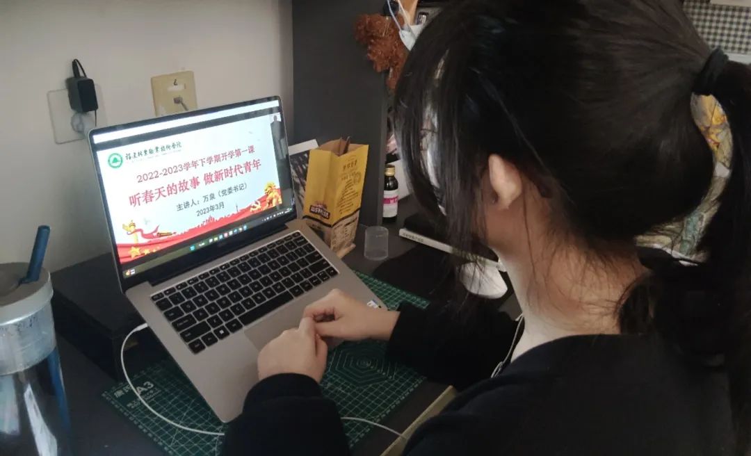 讲座围绕“东方风来满眼春,党的二十大擘画新时代的教育蓝图”“自信自强守正创新,在职业教育的春天里勇毅前行”“春回大地万物复苏,疫情防控进入新阶段”“不负春光不负韶华,立志做新时代好青年”四个方面娓娓道来,讲述了那些动听的“春天的故事”,万名师生线上线下齐感受春暖花开、春潮澎湃。
