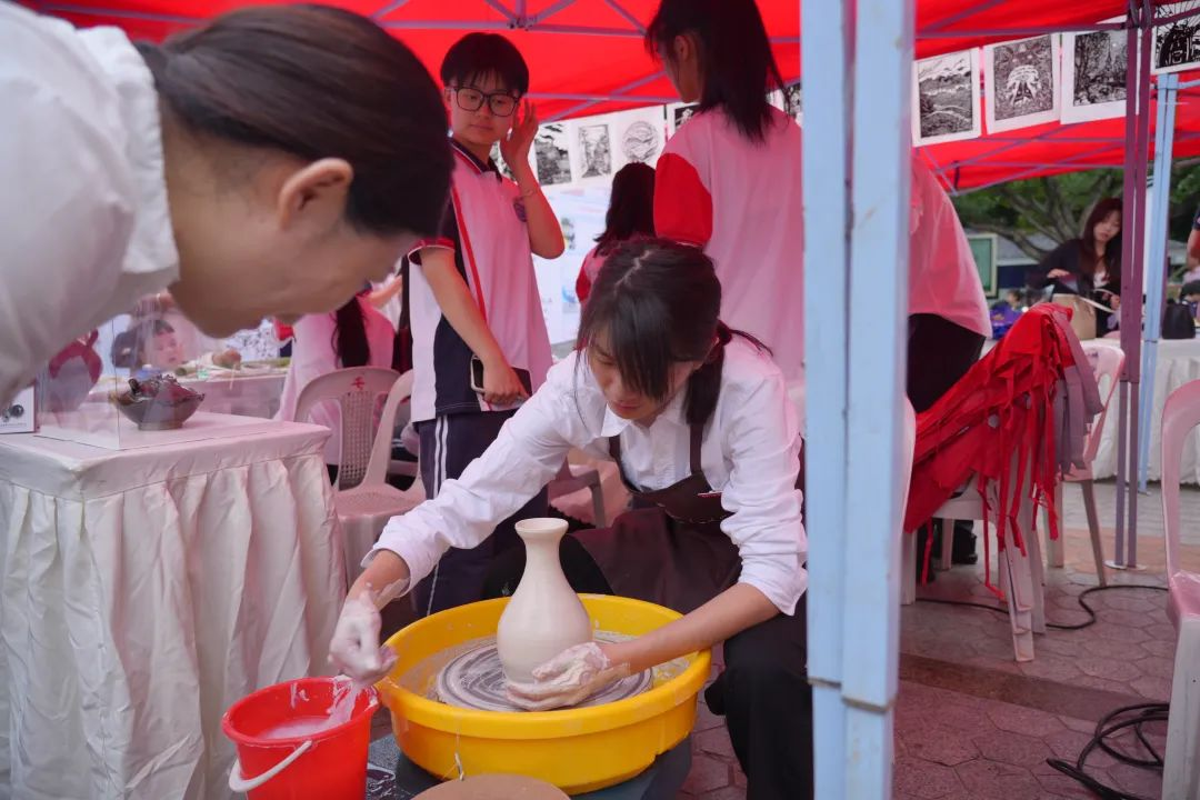 在技能项目展示区,我院师生通过插花、书法技能展示,充分展现了良好的技能水平和精神风貌,大力弘扬“劳动光荣、技能宝贵、创造伟大”的时代风尚,进一步营造全社会关心支持职业教育的良好氛围。