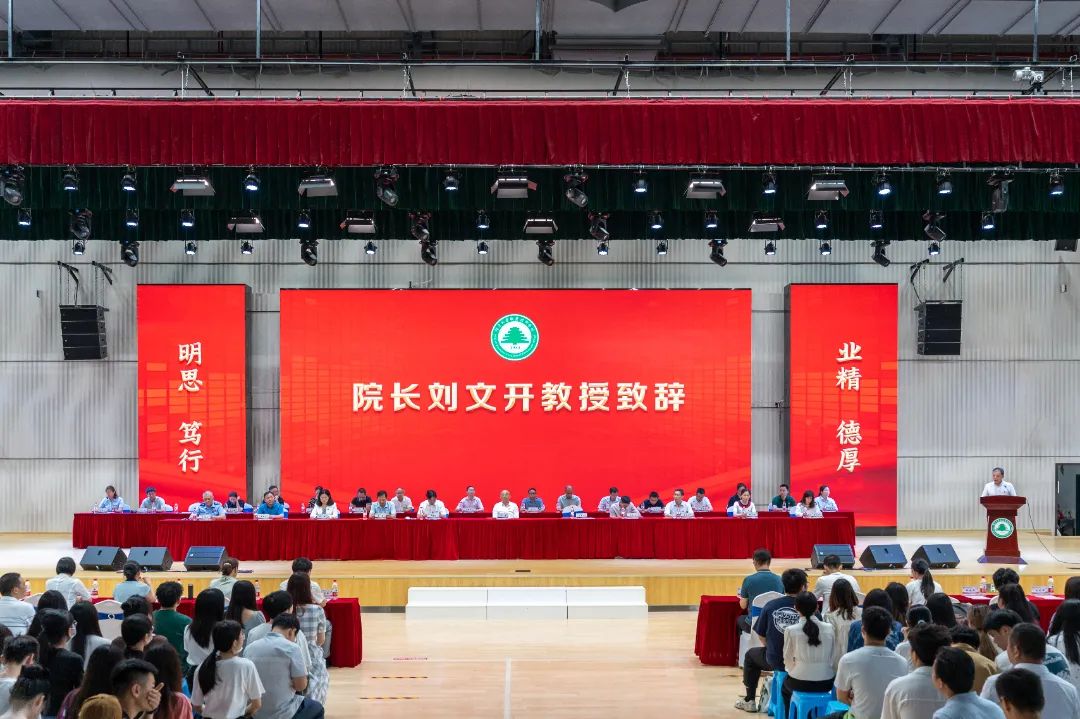 “毕业如期而至,未来就在脚下。今天,我们相聚在雄伟壮观、全省一流的江南体育馆,共同见证2023届6843名同学硕果累累的毕业季和人生旅途的新征程。”院党委副书记、院长刘文开在致辞中代表学院向2023届毕业生表示热烈祝贺。“我希望你们铭记“敬业、吃苦、务实、进取”的天麟精神和“明思、笃行、业精、德厚”的校训,并成为伴随你们一生的精神财富!”刘文开院长对毕业生们提出殷切希望,“一要永葆家国情怀。砥砺奋斗梦想,主动将自己的人生际遇与国家民族的命运前途紧密相连,用实际行动诠释青年的责任担当,践行校歌中唱到的:“我们是绿色希望使者,建设家园装点河山,我们是七彩生命之光,自强不息成就梦想”,在爱国奉献中实现个人价值;二要崇尚奋斗精神。还在择业阶段的毕业生,要认清就业形势的严峻性,坚持先就业后择业,积极参加学院大型招聘会。已经就业的毕业生,要坚持干一行精一行,把学到的知识和技能运用到实践中去,持之以恒地坚持下去,小白也可能成为专家;三要常怀感恩之心。要感恩父母的养育,要感恩老师的教诲,要感恩同学的帮助,感恩生命里,别人对自己的每一次帮助;感恩岁月里,每一份温暖的记忆。