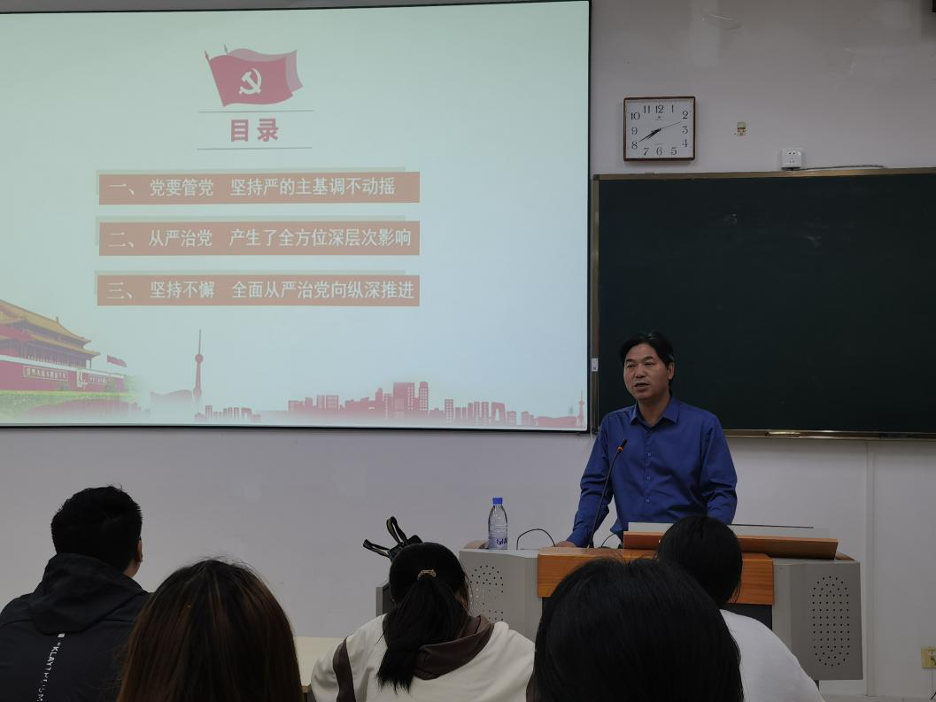 本网讯 5月24日晚,严绍裕副书记为林学系师生党员和所联系班级(林业技术2203班)作《新时代全面从严治党的伟大实践》党课。林学系党总支书记傅成杰、专职组织员罗勇、学生科长马艳红、全体专职辅导员及林业技术2203班全体学生出席学习活动,活动由系党总支书记傅成杰主持。
